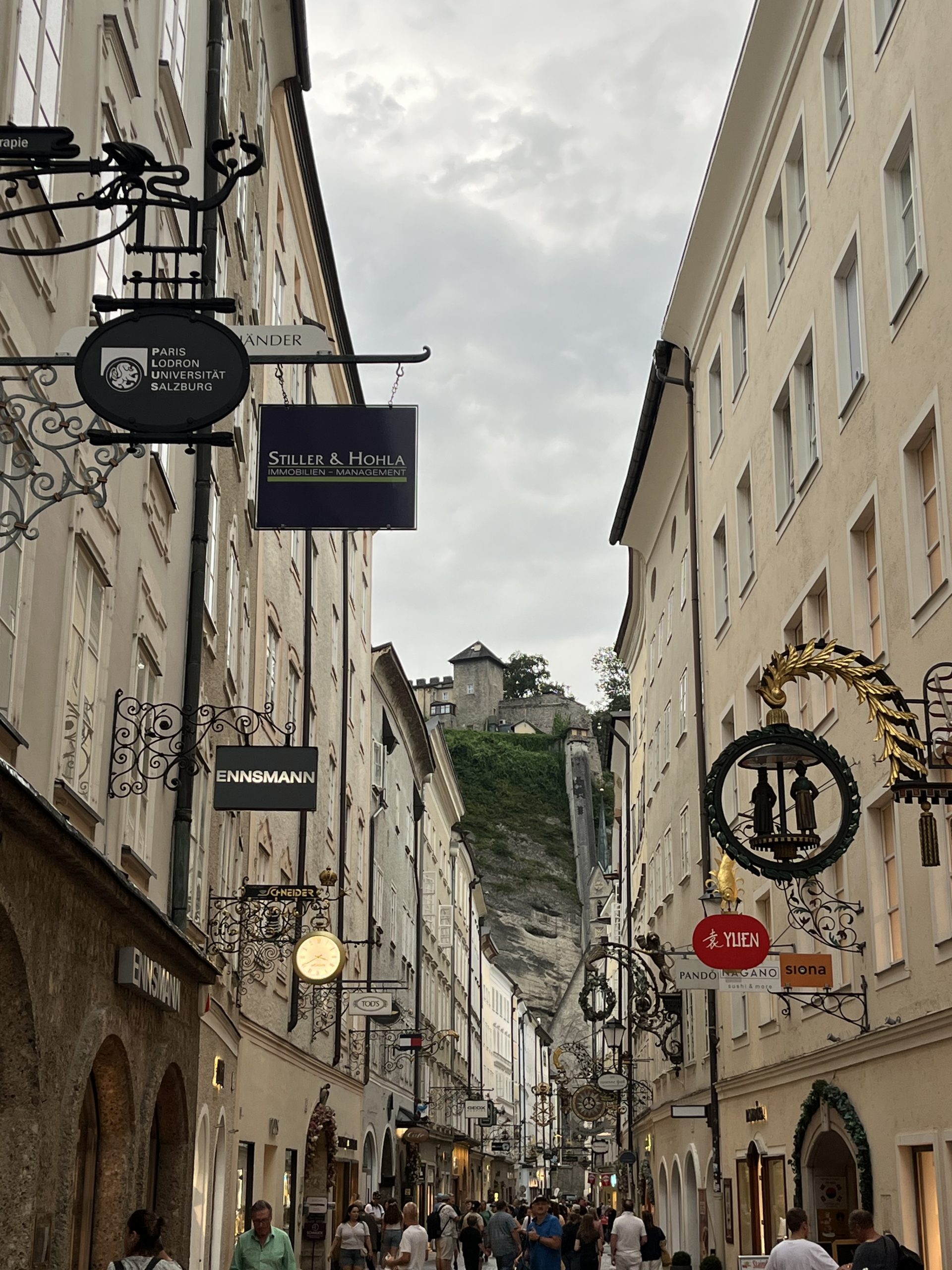 In die Stadt Salzburg gelangt man ganz entspannt entweder mit dem Bus (Haltestelle gegenüber des Stellplatzes beim Jägerwirt) oder man fährt mit den Fahrrädern entlang des Radweges. Egal wann man Salzburg besucht, es tummeln sich immer eine Menge Touristen. Diesmal – während der Festspielwoche – waren es besonders viele internationale Gäste, die nicht nur durch die berühmte Getreidegasse strömten.