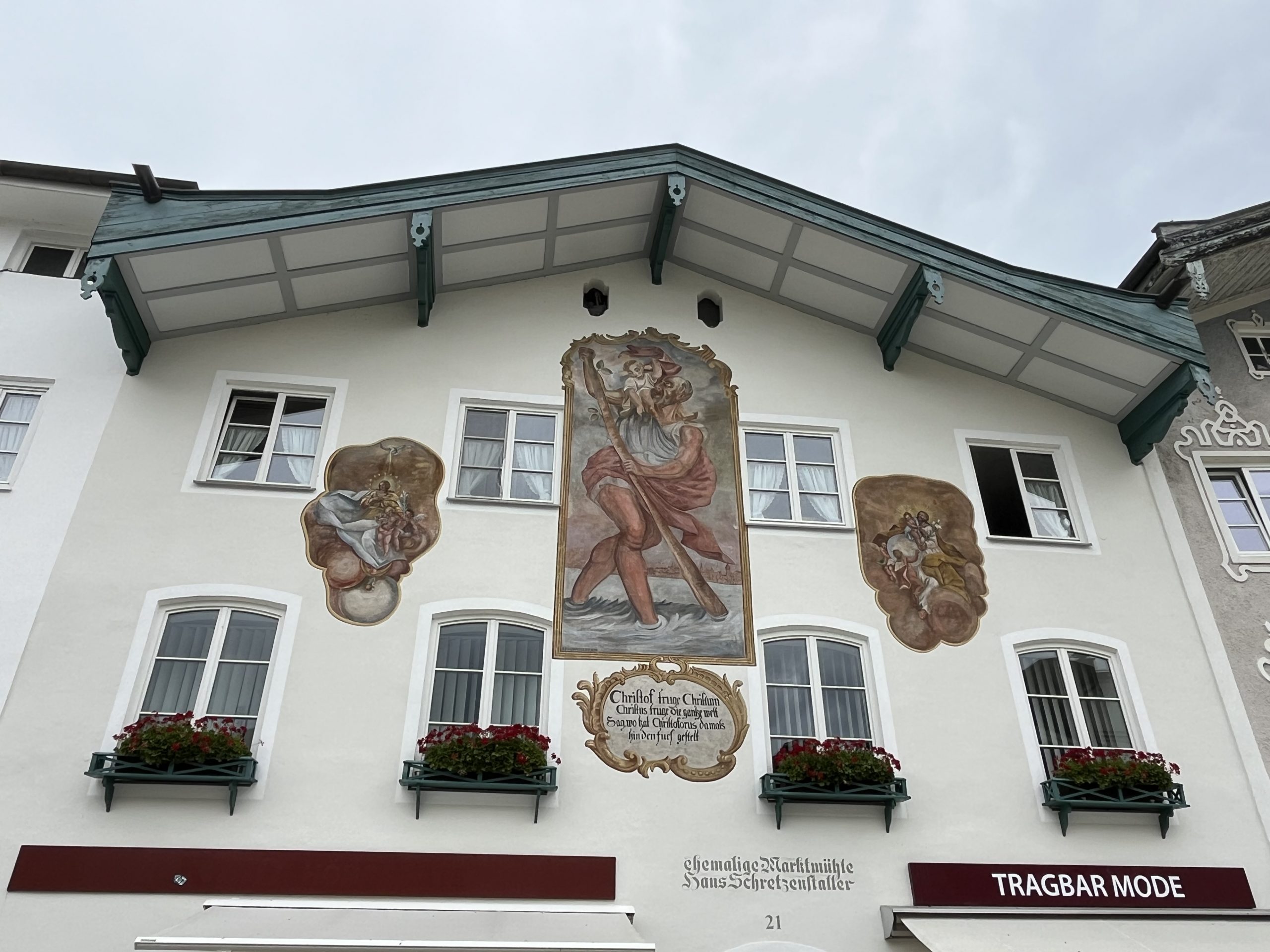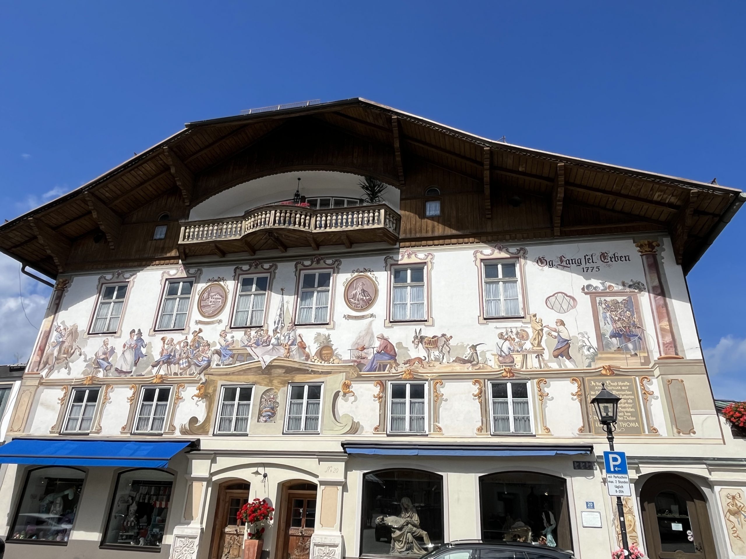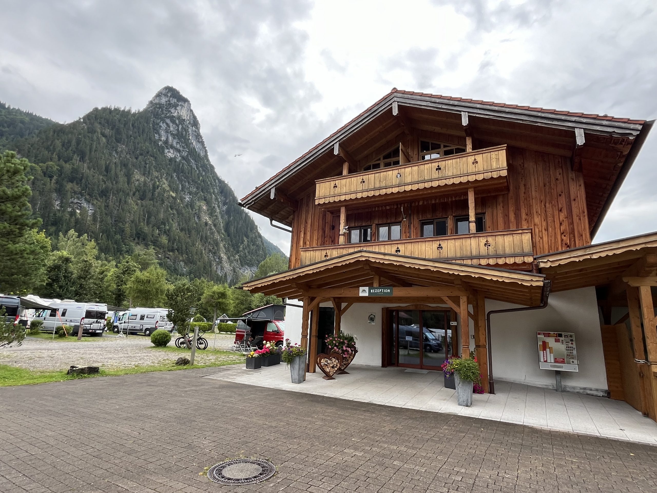 Nach rund 185 km erreichten wir den Campingpark Oberammergau. Die Rezeption war zwar geschlossen (1200 – 1500 Uhr), aber auf der Tür befand sich eine Namensliste mit den zugeordneten Stellplätzen. Somit stand einem Beziehen des Platzes nichts im Wege und die Formalitäten erledigten wir einfach später. Der Strom wurde erst nach der offiziellen Anmeldung freigeschaltet. Auch dieser auf 830 m Seehöhe gelegene Campingplatz war nahezu ausgebucht und wir waren einmal mehr froh, reserviert zu haben. Der Platz teilt sich in drei Bereiche. Zum einen befindet sich gleich nach dem Schranken eine geschotterte Fläche wo ca. 20 Wohnmobile völlig autark stehen können. Der größere Bereich ist der Campingplatz für Wohnmobile und Wohnwägen und im hinteren Bereich befindet sich noch eine kleine Zeltwiese. Von unserem Platz aus blickten wir direkt auf den Kofel. Der Kofel ist ein 1342 m hoher Berg der Ammergauer Alpen. Durch seine exponierte Lage und markante Form ist er weithin zu erkennen. Die Sanitäreinrichtungen waren gut ausgelastet, wobei man nur mit einem Chip Zutritt hatte. Damit wurde verhindert, dass die Gäste am „Reisemobilhafen“ (zahlen ja auch wesentlich weniger) die Sanitäreinrichtungen nicht benutzen konnten, was ja gegenüber den „Vollzahlern“ nur fair ist. Die Betreiber des Campingplatzes sicherten sich in vielen Bereichen ab. Für den besagten Chip zur Benutzung des Sanitärhauses hinterlegt man eine Kaution von € 20,00. Für die ausgegebene Oberammergau-Card mit der man nicht nur alle öffentlichen Verkehrsmittel gratis benutzen kann, sondern auch bei vielen Sehenswürdigkeiten keinen oder einen verminderten Eintritt bezahlt, war eine Kaution von € 5,00 per Stück zu hinterlegen. Besonders kostenintensiv war allerdings der Strom der nach dem tatsächlichen Verbrauch abgerechnet wurde. Wir zahlten für drei ruhige und kühle Nächte (2 Erwachsene) € 162,50, wobei sich der Strom mit € 15,65 zu Buche schlug. Eigentlich sind wir mit unserer Solaranlage und einer 150 Ah Lithium-Bordbatterie gut ausgestattet, allerdings läuft der Kühlschrank nicht über die Solaranlage. Daher bevorzugten wir den Stromanschluss am Campingplatz. Im Grunde genommen ein Luxusproblem, denn der Kühlschrank würde auch – allerdings nicht so leistungsstark – mit Gas funktionieren.
