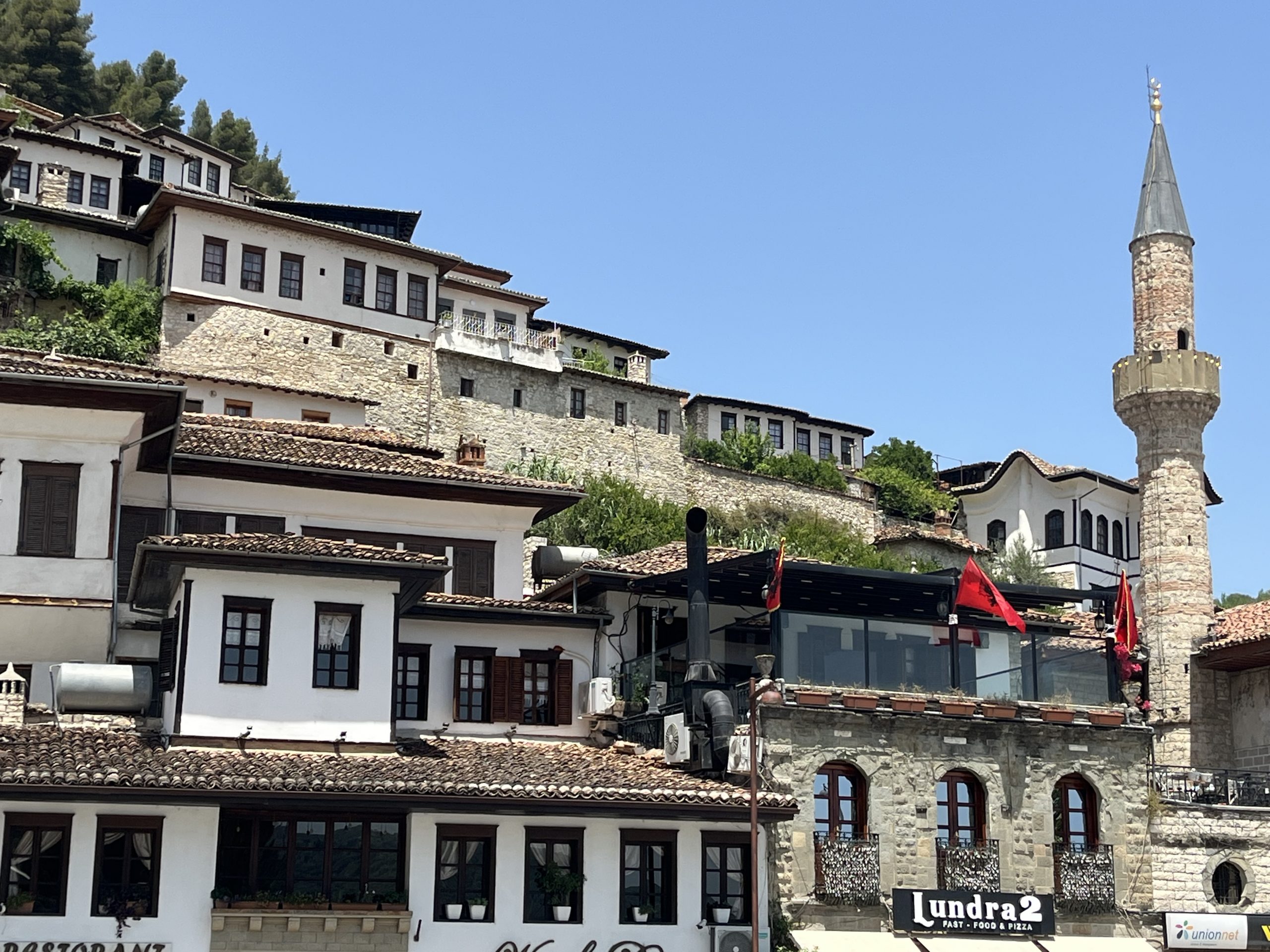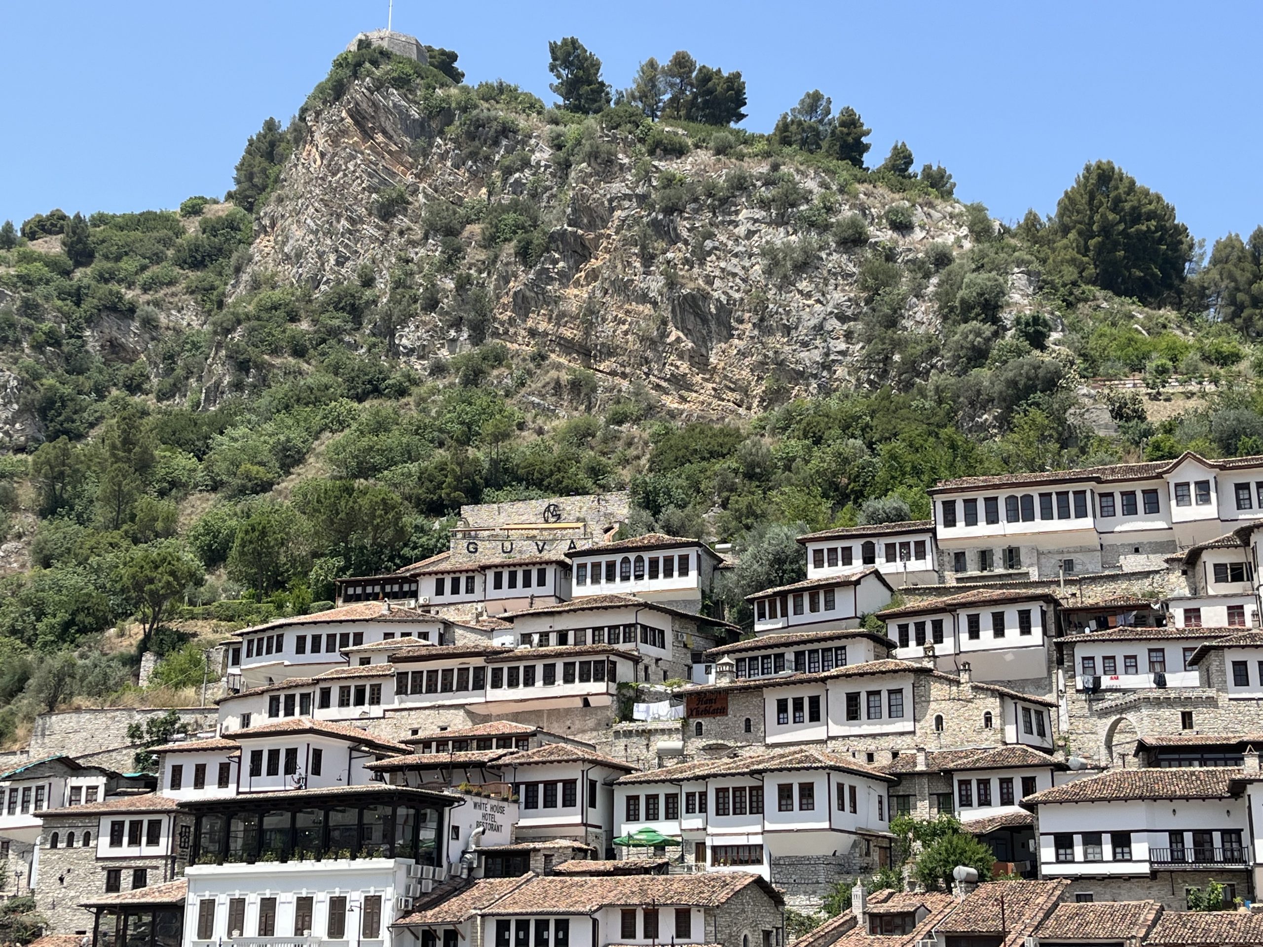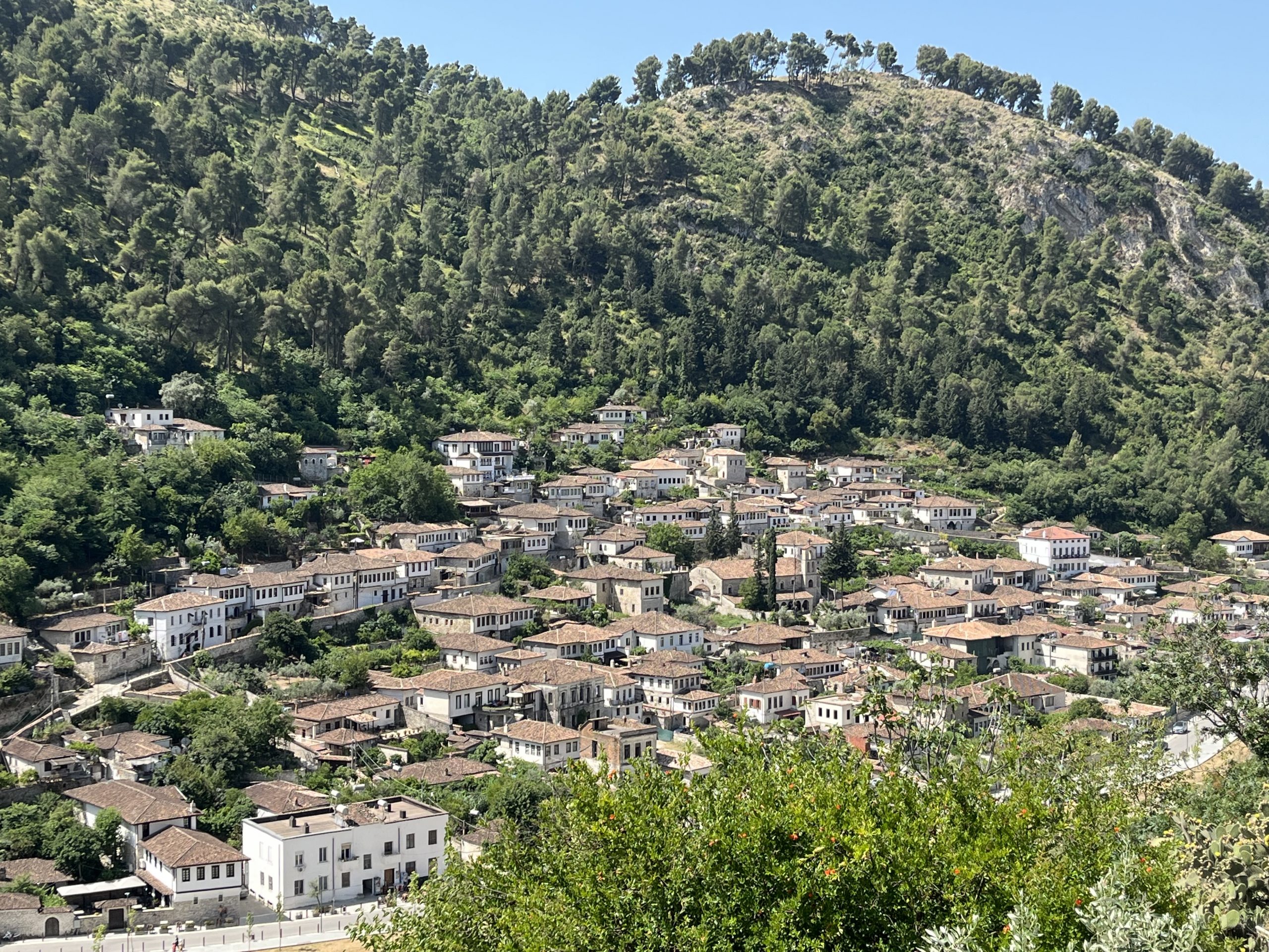 Von Himare aus setzten wir unsere Reise fort und steuerten unser nächstes, mit Spannung erwartetes Ziel, Berat an. Die sogenannte „Stadt der tausend Fenster“, versprach ein weiteres Eintauchen in die Geschichte. Die Fahrt nach Berat führte uns durch eine beeindruckende Landschaft, die uns schon jetzt auf die historischen Wunder dieser Stadt einstimmte.