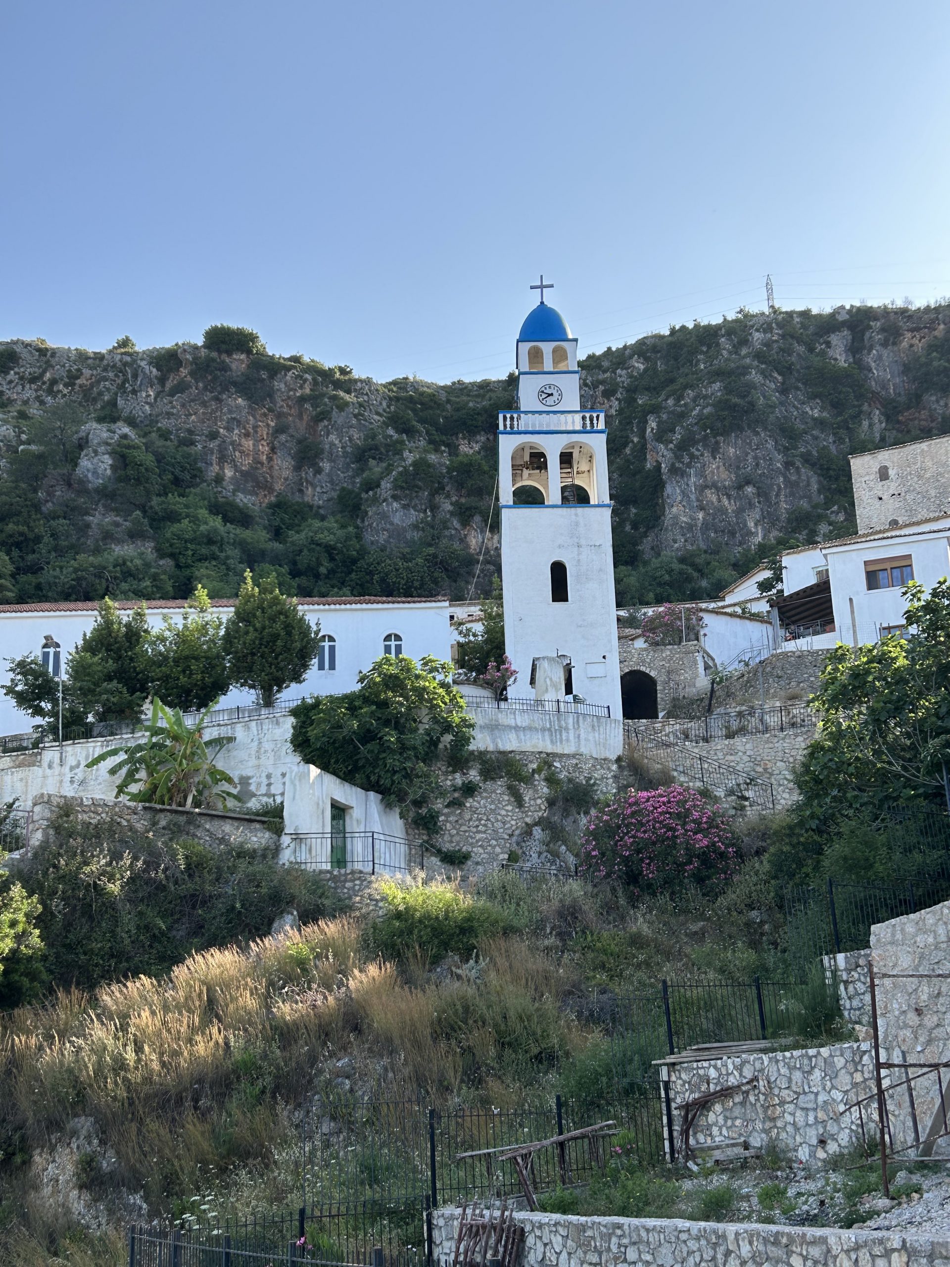 Etwas oberhalb der Stadt gelegen liegt das einzige noch bewohnte Kloster der Insel. Von hier aus genießt man einen wunderschönen Panoramablick über Lefkada Stadt und die Küste – perfekt für einen Besuch am späten Nachmittag.